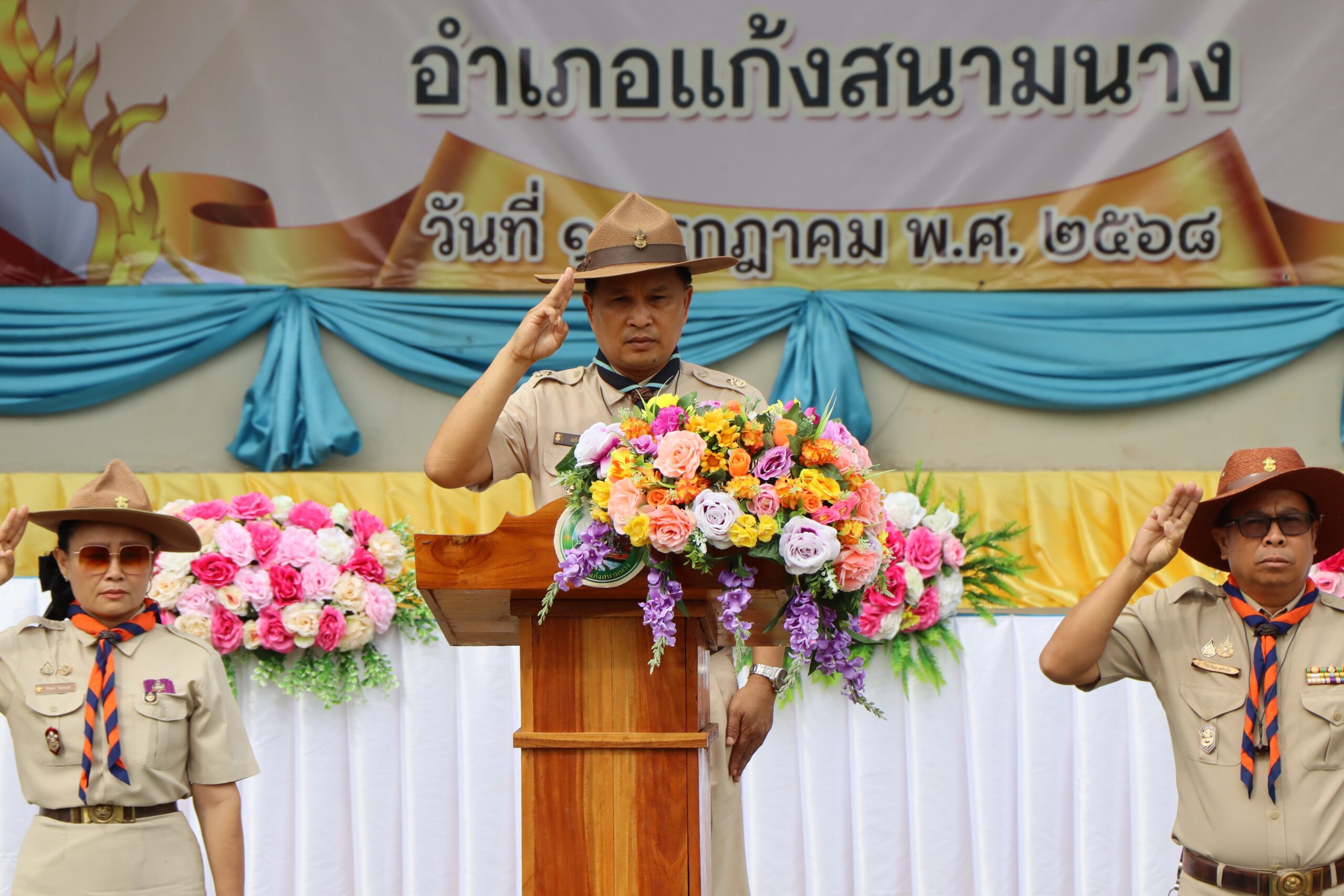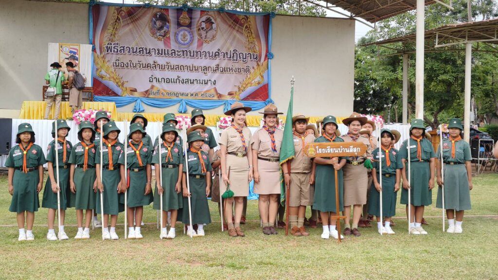 1 กรกฎาคม 2568 นายศุภาพงษา จันทรังษ์ ผู้อำนวยการสำนักงานลูกเสือเขตพื้นที่การศึกษานครราชสีมา เขต 6 มอบหมายให้นายสมชัย นิยันตัง รองผู้อำนวยการสำนักงานลูกเสือเขตพื้นที่การศึกษานครราชสีมา เขต 6 เป็นประธานในพิธีทบทวนคำปฏิญาณ และสวนสนามของลูกเสือในวันสถาปนาคณะลูกเสือแห่งชาติ ประจำปี 2568 ณ บริเวณหน้าที่ว่าการอำเภอแก้งสนามนาง เพื่อเป็นการน้อมรำลึกในพระมหากรุณาธิคุณของพระบาทสมเด็จพระมงกุฎเกล้าเจ้าอยู่หัว ผู้พระราชทานกำเนิดลูกเสือไทย และเป็นการแสดงความจงรักภักดีแด่องค์พระบาทสมเด็จพระเจ้าอยู่หัวพระประมุขของคณะลูกเสือแห่งชาติ โดยมีกองลูกเสือ เนตรนารี สำรอง สามัญ สามัญรุ่นใหญ่ ผู้บังคับบัญชาลูกเสือ จาก 26 โรงเรียน ในอำเเภอแก้งสนามนาง และมีผู้บังคับบัญชาลูกเสือ ลูกเสือ เนตรนารี จำนวนกว่า 1,000 คน เข้าร่วมประกอบพิธีฯ