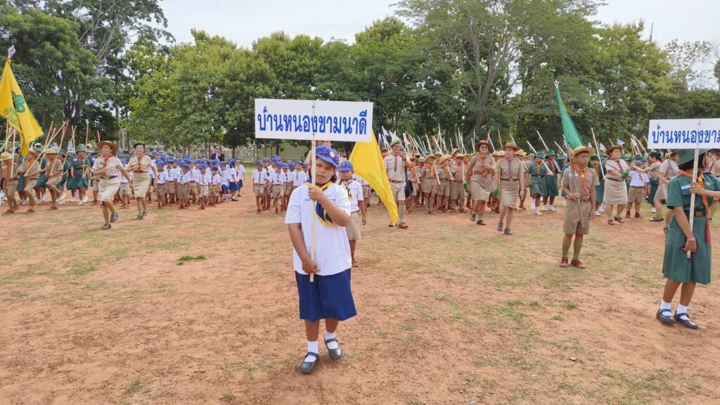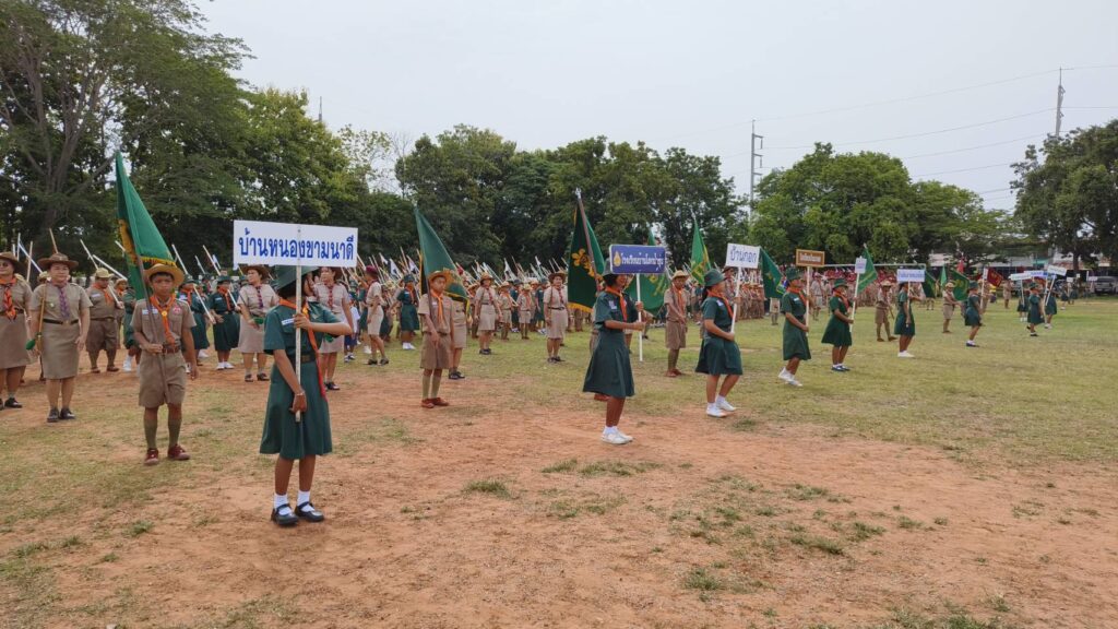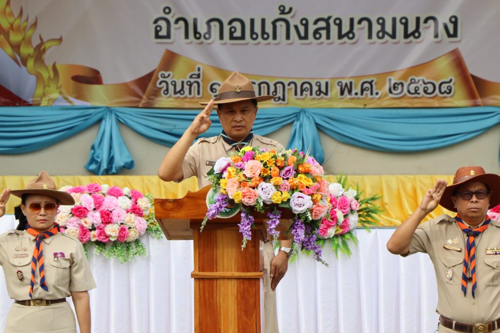 อำเภอแก้งสนามนาง จัดพิธีทบทวนคำปฏิญาณและสวนสนามลูกเสือ เนื่องในวันสถาปนาคณะลูกเสือแห่งชาติ ประจำปี 2568 น้อมรำลึกถึงพระบาทสมเด็จพระมงกุฎเกล้าเจ้าอยู่หัว ผู้พระราชทานกำเนิดลูกเสือไทย และแสดงความจงรักภักดีพระบาทสมเด็จพระเจ้าอยู่หัว ประมุขของคณะลูกเสือแห่งชาติ
